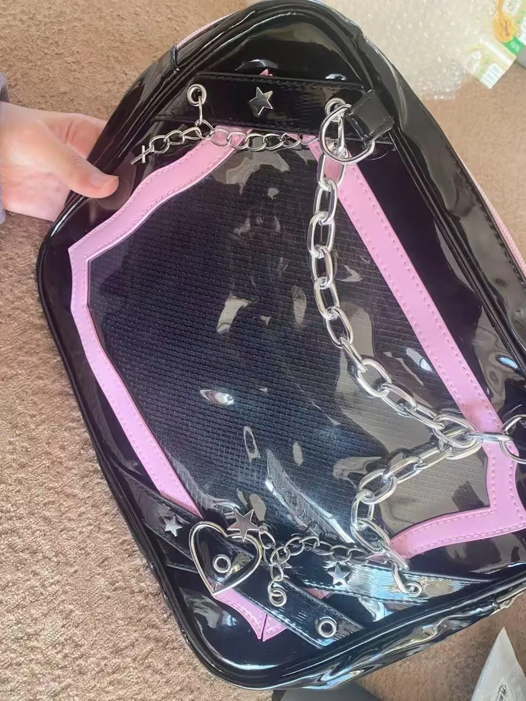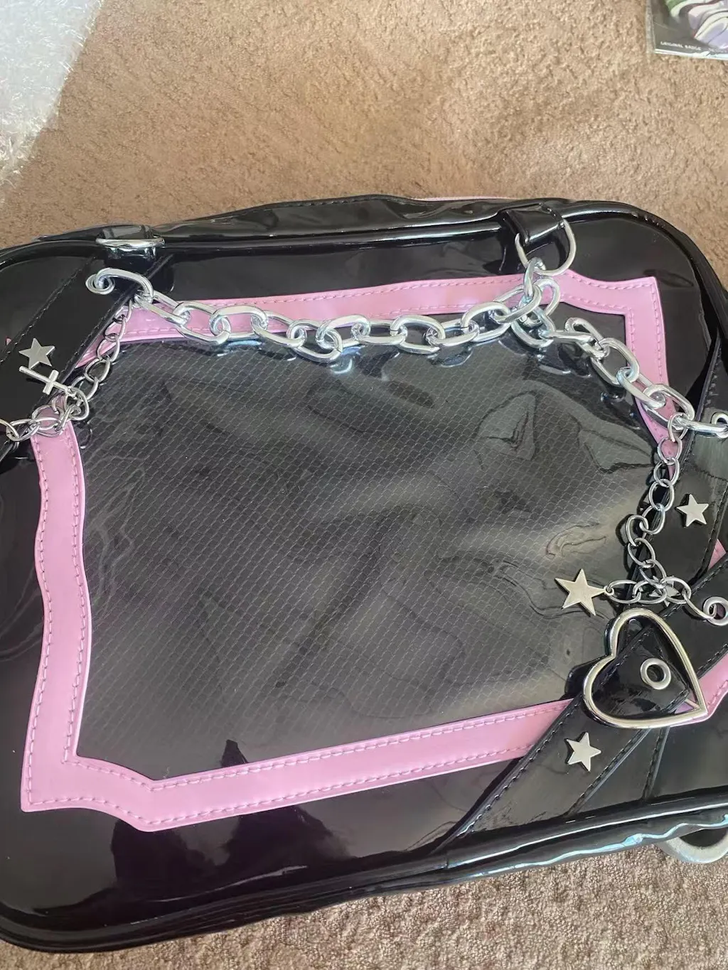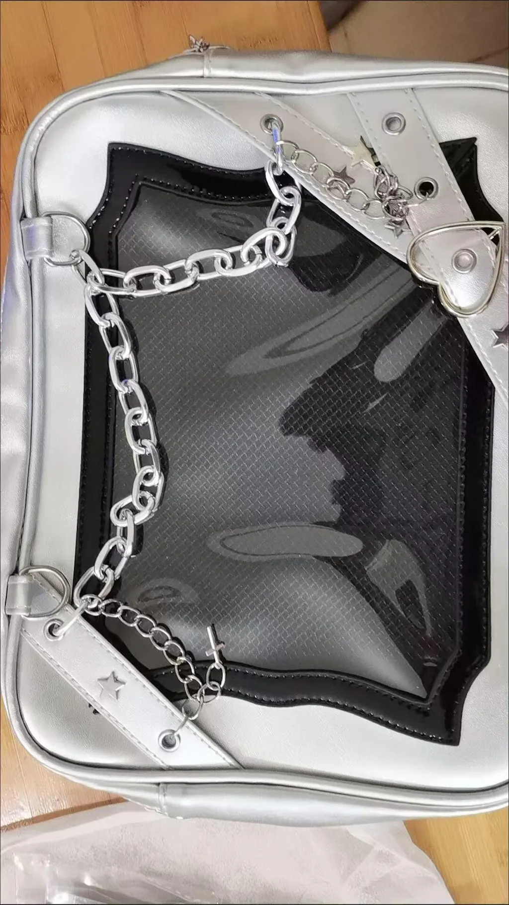Gothic Chain Ita Bag — Clear Window Crossbody Satchel for Anime Pins, Plushies & Photocards