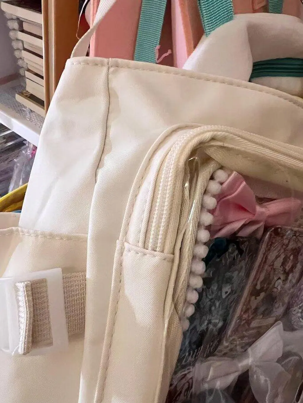 - White/Ivory — clean off-white, the most classic ita bag look. Pins and photocards read clearly against the light background