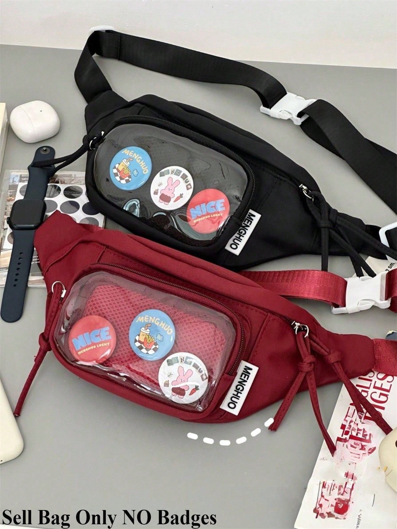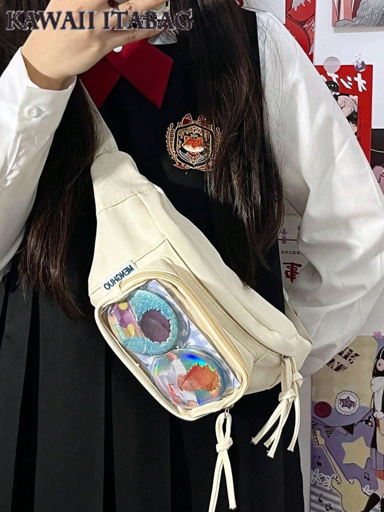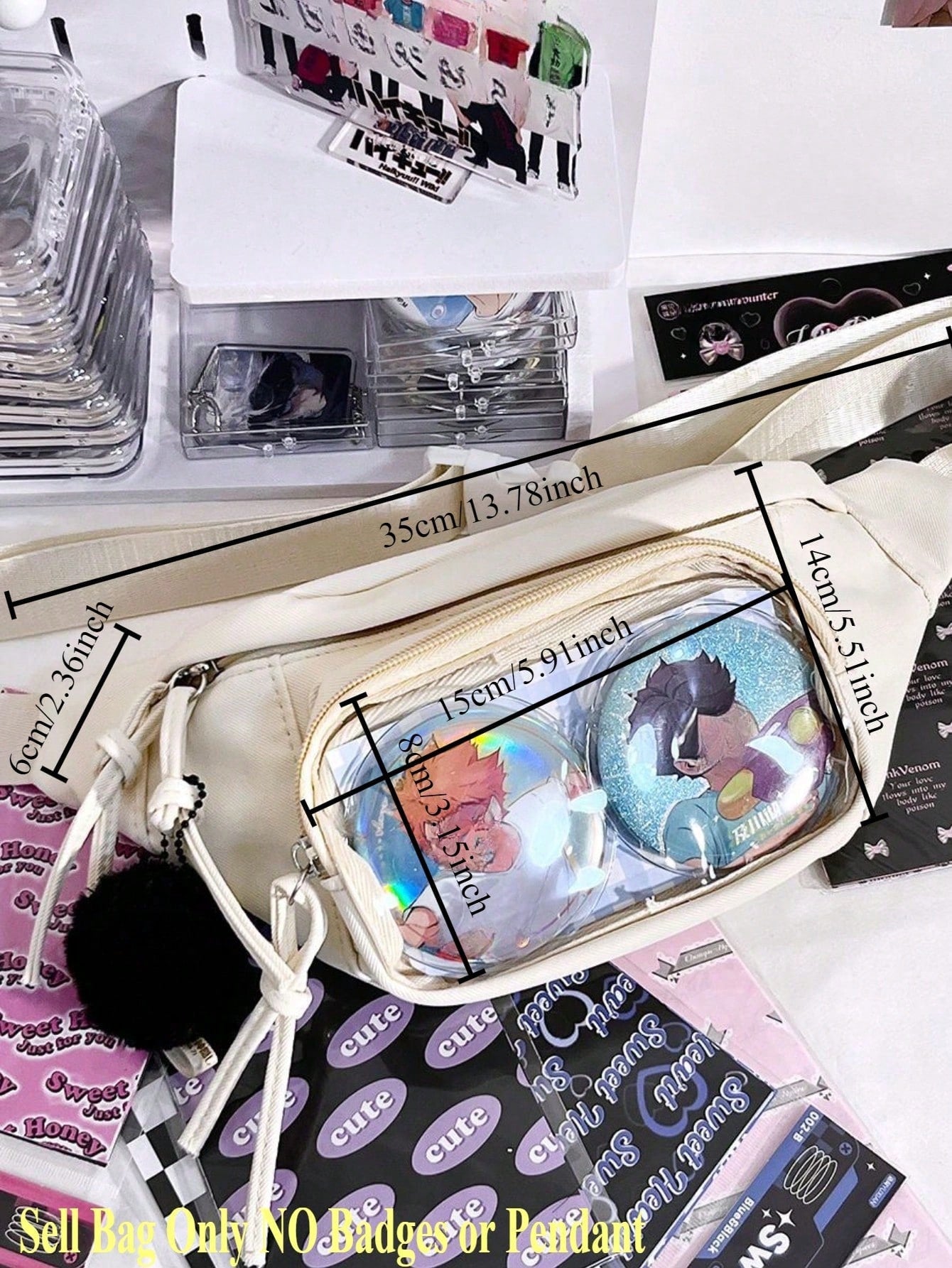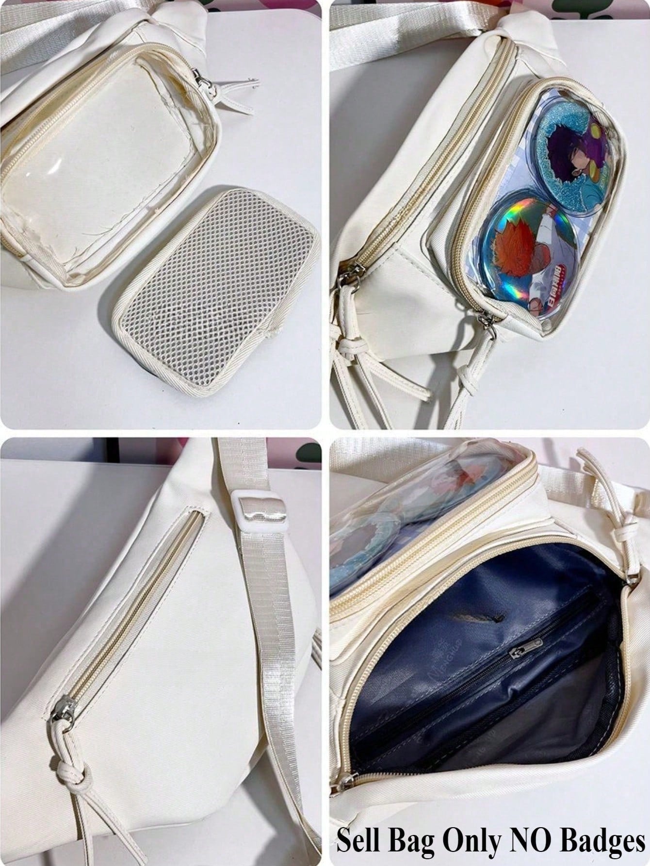 Express your fandom with this stylish crossbody itabag – designed for anime lovers, pin collectors, and anyone who loves to personalize their look! Featuring a clear front window, this itabag is the perfect way to display your favorite charms, badges, and keychains while keeping them safe and secure.
