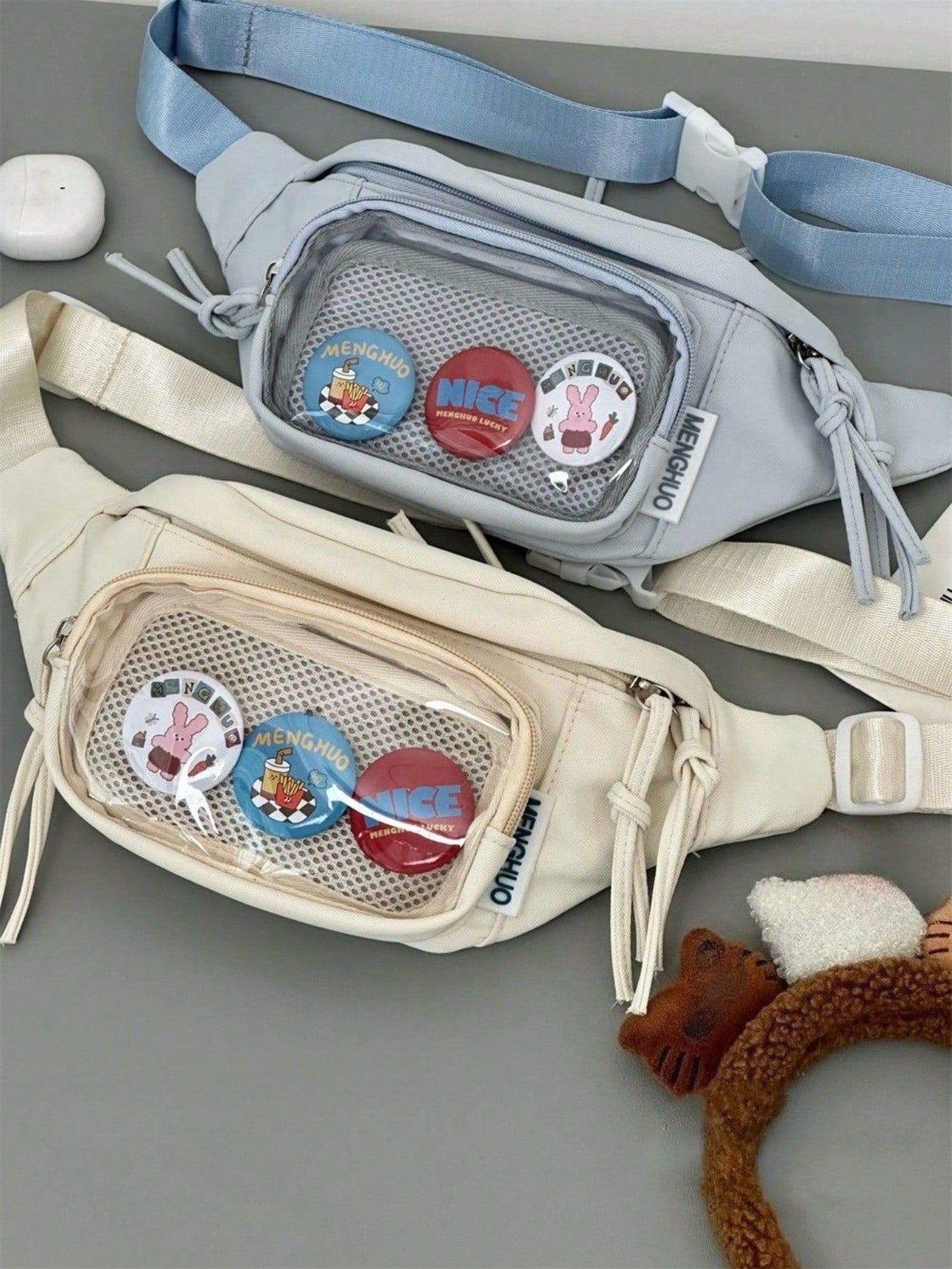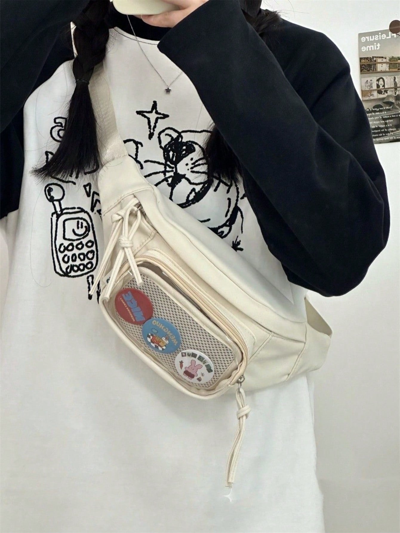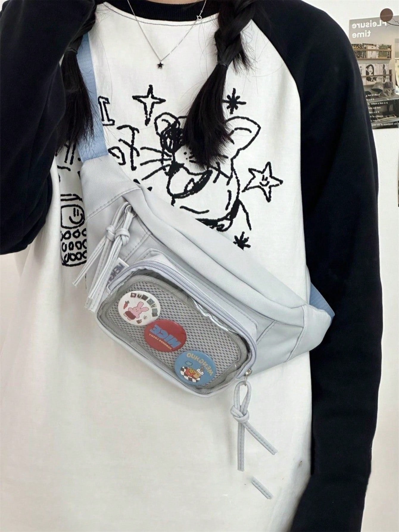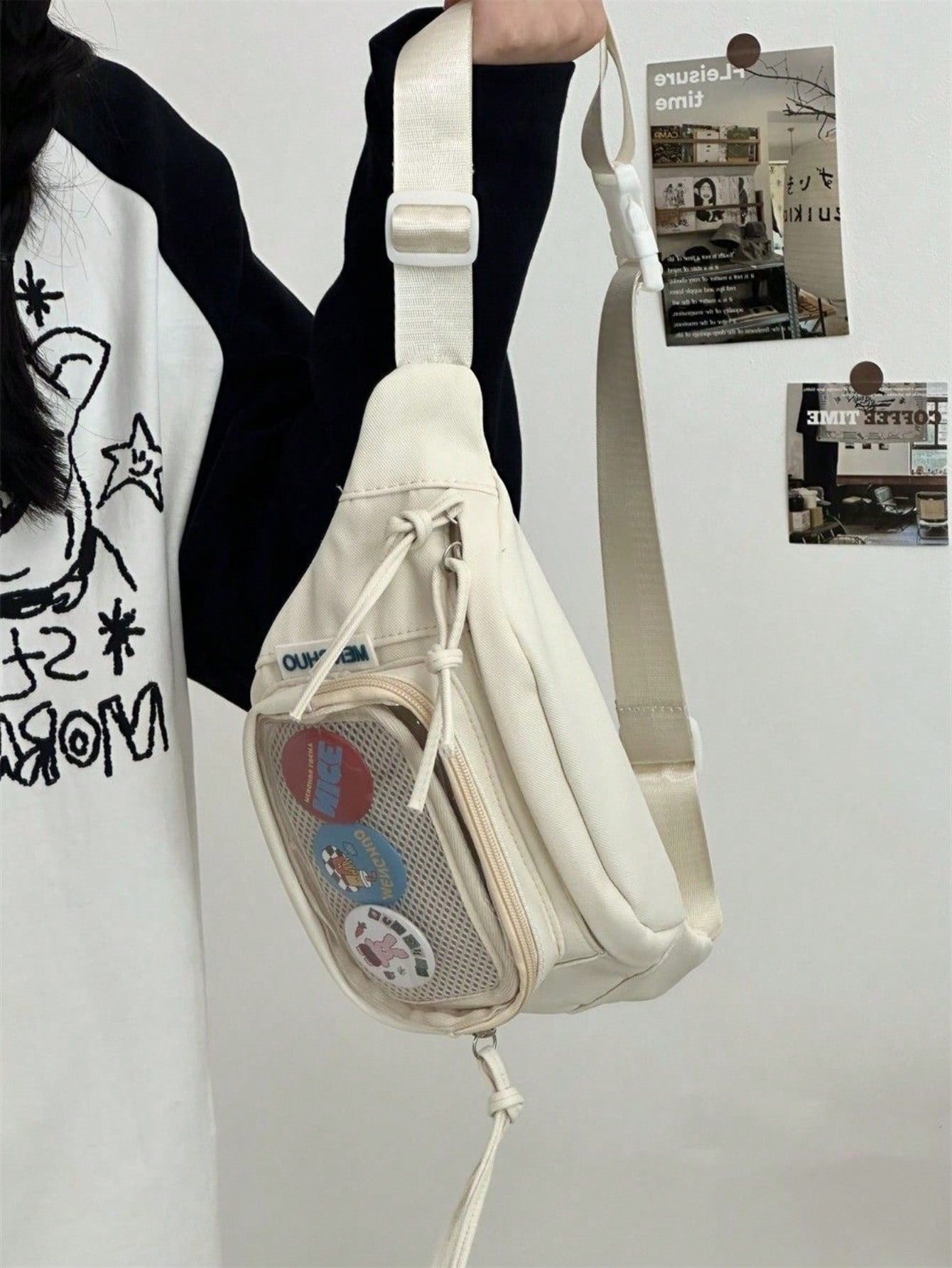 Preppy Style Chest Bag Women Kawaii Japanese Harajuku Waist Bag Nylon Crossbody Bags Clear Transparent Bag Sling Bag Purses And Handbags With Badges Display Plate Anime Fans Pack New Back Pack Fashion Cross Body DIY Bag New Chest Bag Women